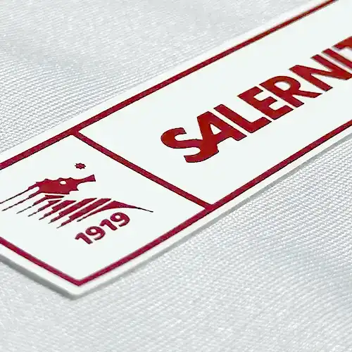 - Puede ser aplicado en poliéster, algodón, mezclas: el emblema puede ser aplicado en cualquier tipo de tela que soporte la temperatura específica. Se recomienda hacer pruebas de solidez antes de iniciar cualquier estampación en serie.