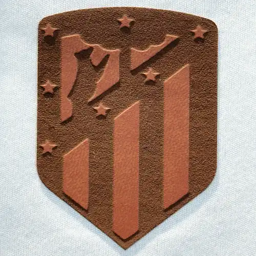 Emblema textil termoadhesivo de piel sintética grabado con láser de alta precisión. La alternativa perfecta para quienes buscan un acabado premium, sostenible y moderno en sus diseños de emblemas textiles.